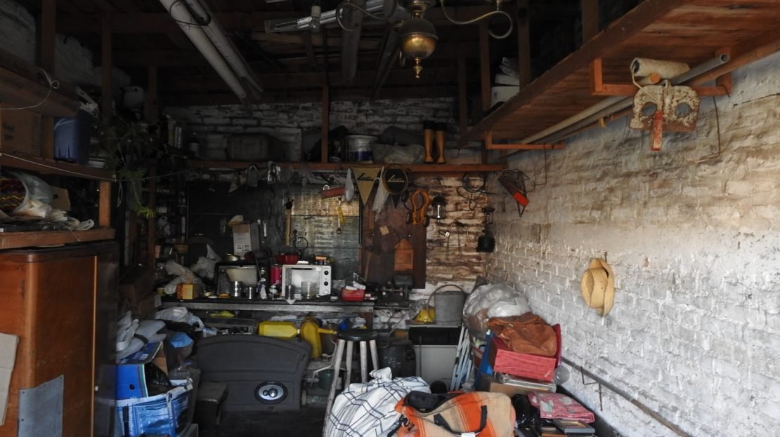 Garage con amplio fondo verde