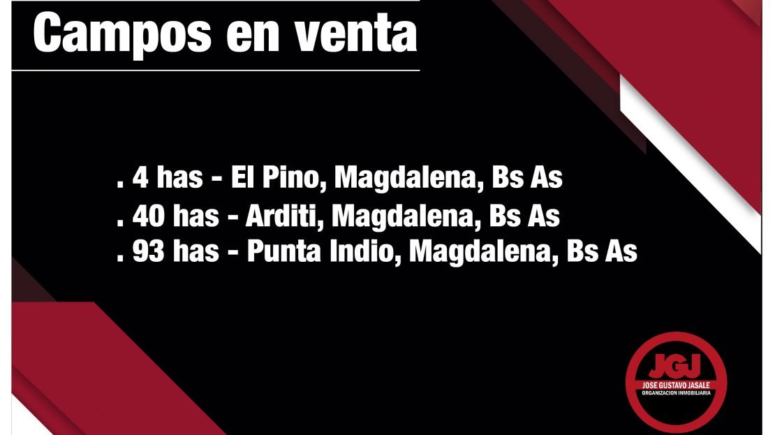 - 40 has ganaderas en Arditi, ptdo de Magdalena, Buenos Aires. Posee dos potreros, hermosa y añosa arboleda de eucalyptus. Campo con aptitud agrícola, maicera, con buenos rindes como así también sojero con excelente aptitud ganadera para ciclo completo, cría, recría y engorde de novillos. Actualmente su actividad es ganadera engordando novillos a campo natural. Campo de lomas bien pronunciadas con excelente calidad de suelos profundos. No posee mejoras de población. Valor usd 220.000,-